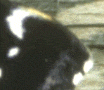 I have sampled the two wing markings as GIF images and zoomed them to allow you to see the pixel to pixel variation in to original full size scan. A GIF palette of 256 optimised colours was used. I think the left wing section shows slight chromatic aberration in the lens - colour fringes on the white markings. Near the centre of the field there are linear features visible that are just a single pixel wide.