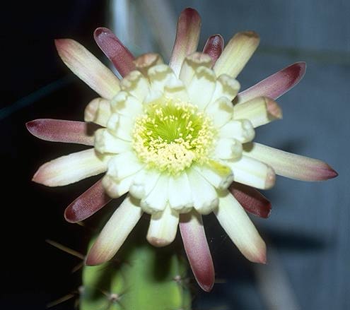 Most people would consider this a weed and not give it house room. The white flowers open in the evening and are between 8 and 10 inches across. It will flower when about 4 feet tall in good conditions. It was the first plant I ever raised from seed and it has survived three house moves and 3 years of storage treated as a generic house plant. I also have a viciously spined no-name Opuntia which spent the same 3 years completely untended in a derelict greenhouse and also survived.