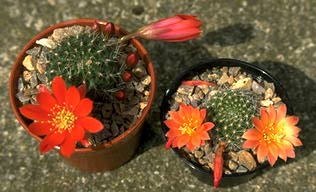 2 year old Rebutia seedlings though still quite small and in 2" pots will flower freely. Teesside branch of the BCS has several members who enjoy seed raising and grow plants for sale to the public to boost branch funds.